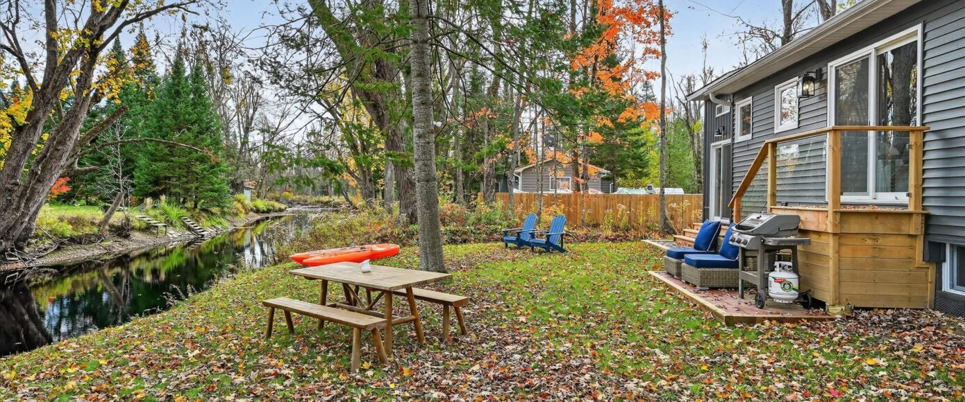 The detached bunkie with loft, is heated and ready for the kids to hang out. Includes outdoor furniture, toys and gazebo. Sit around the campfire River side and enjoy the quiet peaceful essence of being surrounded by nature. There is a flow of casual elegance in the 1200 square feet of living space influenced by the surrounding nature of 125′ of river living. Minutes away from the Villages of Bobcaygeon and Buckhorn. Two hours from the GTA. Plenty of snowmobile, hiking, biking trails and boating access near-by. Be in before the holidays and start new traditions for your family.