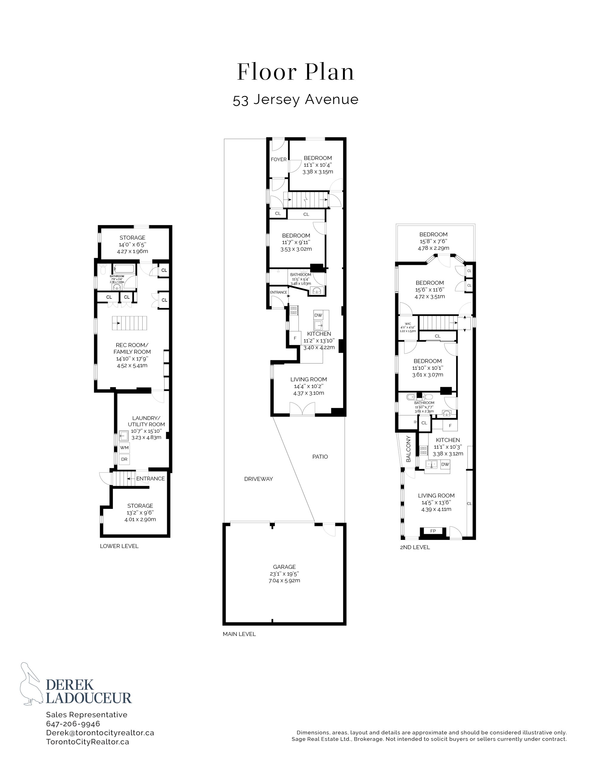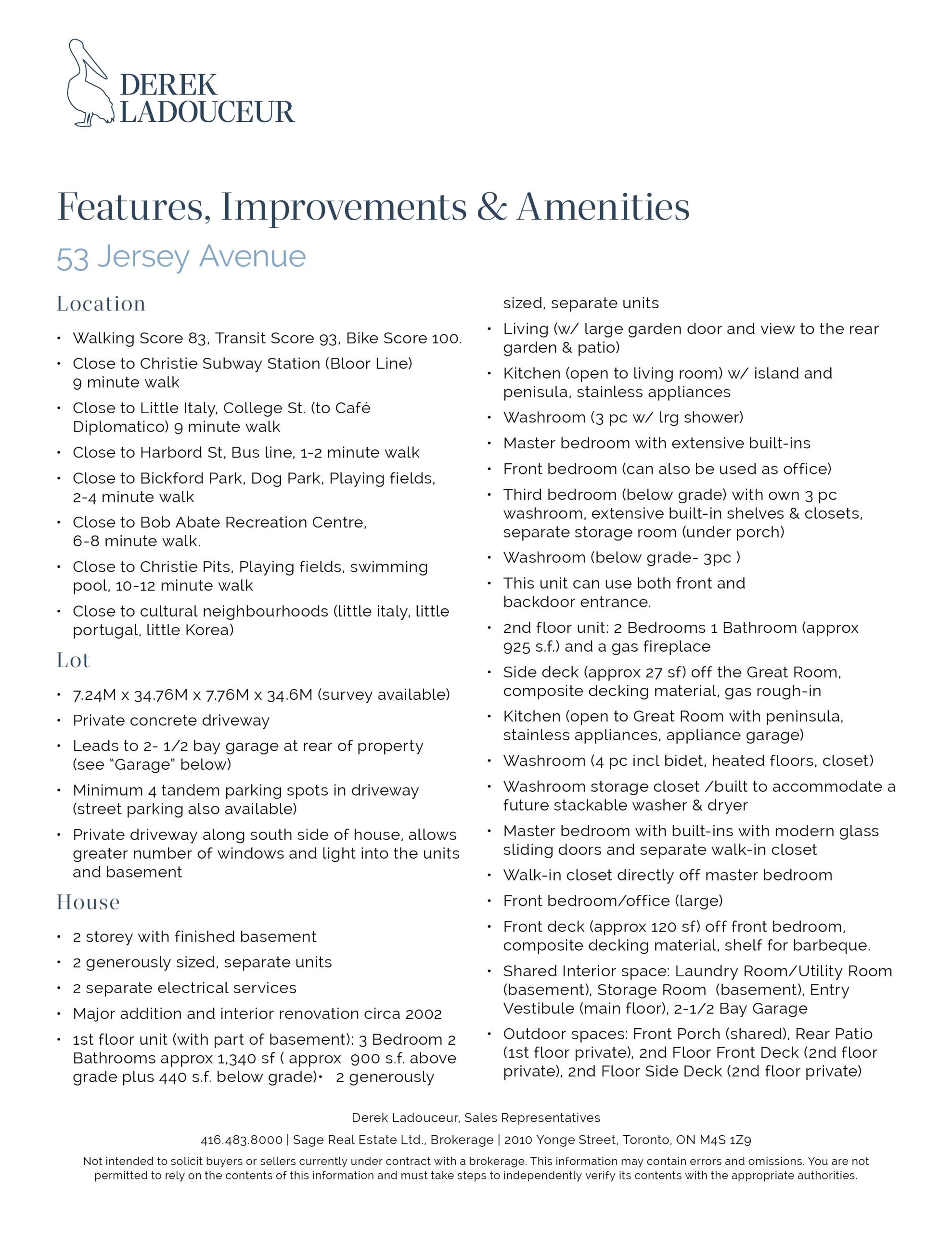 Welcome to 53 Jersey Avenue — where Toronto living actually checks all the boxes you keep saying you want. Detached home? Yep. Private driveway with parking for four? Obviously. A 2.5-car garage so oversized you could turn it into another two units, a garden suite, or just the most obnoxious man cave on the block? Done. Inside, you’ve got not one but two fully renovated units: a 3-bed on the main with bonus basement space, and a 2-bed upstairs with a gas fireplace and private decks. And if you’re worried about location — don’t. You’re a 9-minute walk from Christie Station, College Street patios, Cafe Diplomatico, Harbord cafés, dog parks, playing fields, pools, Little Italy, Little Portugal, Little Korea… basically, all the “little” neighbourhoods you brag about living near but never leave your block to actually visit.