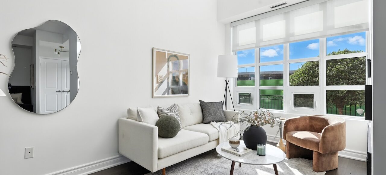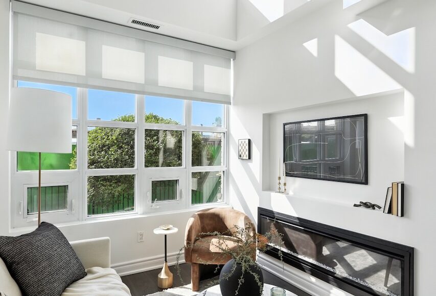 This two-storey townhouse offers a rare blend of house-like living and condo convenience. Step inside and you're greeted by 18-foot ceilings, a dramatic wall of windows, and a south-facing exposure that floods the space with light all day long. Mid-afternoon, the sun streams into the living room in a way that makes you stop an djust take it in.