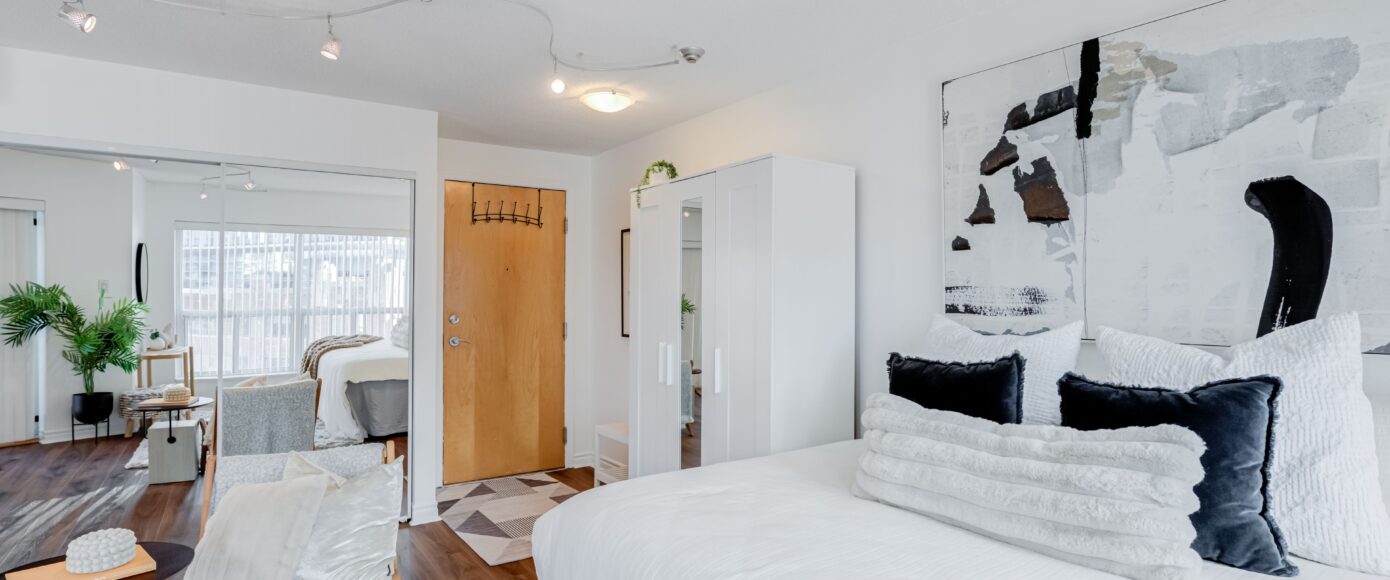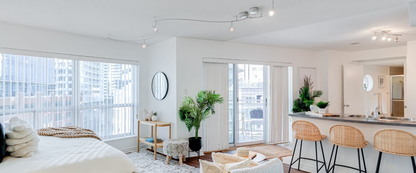 Sun-kissed and airy bachelor with an open-concept layout and skyline views. Ideal for first-time buyers or as the perfect in-city home base for commuting back to the office. This suite features wall to wall windows, natural light in the bathroom, upgrades include flooring, a bathroom vanity, fresh paint, including the ceiling, and an updated heating system. The building offers exceptional management in a boutique setting, with a 24-concierge, guest suites, a renovated yoga room, a gym, a sauna, and free visitor parking. Low maintenance fees include all utilities except internet and TV. Located steps to the waterfront and close to the marina for summer harbourfront living. Transit at your doorstep, minutes to the Gardiner, and walking distance to Billy Bishop Airport for effortless air, land, and water travel. A short walk to Budweiser Stage, BMO Field, CN Tower, Rogers Centre, and Scotiabank Arena. Enjoy the Toronto Music Garden and waterfront bike trail right at your doorstep with Loblaws and Shoppers Drug Mart conveniently across the street. You’ll love living in this well-connected and desirable Harbourfront community.