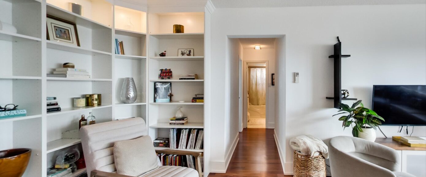 You’ll love the open concept custom AyA kitchen, flowing seamlessly into the principal living areas for easy entertaining. The dining area features quality built-ins to create a cozy banquet nook and cleverly hides the AC unit. The lighted library shelving adds elegance to the living area. The unit includes 3 spacious bedrooms, a fully renovated 4-piece washroom as well as a 2-piece ensuite and walk-in closet in the primary suite. The large laundry room features side by side washer & dryer with custom storage above.