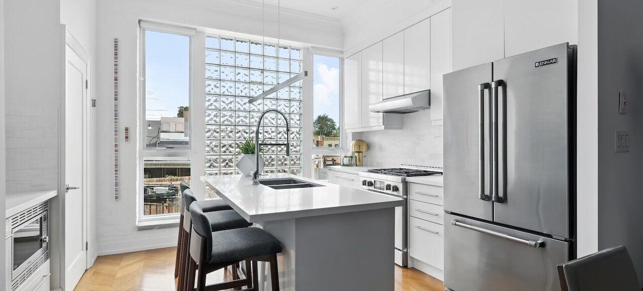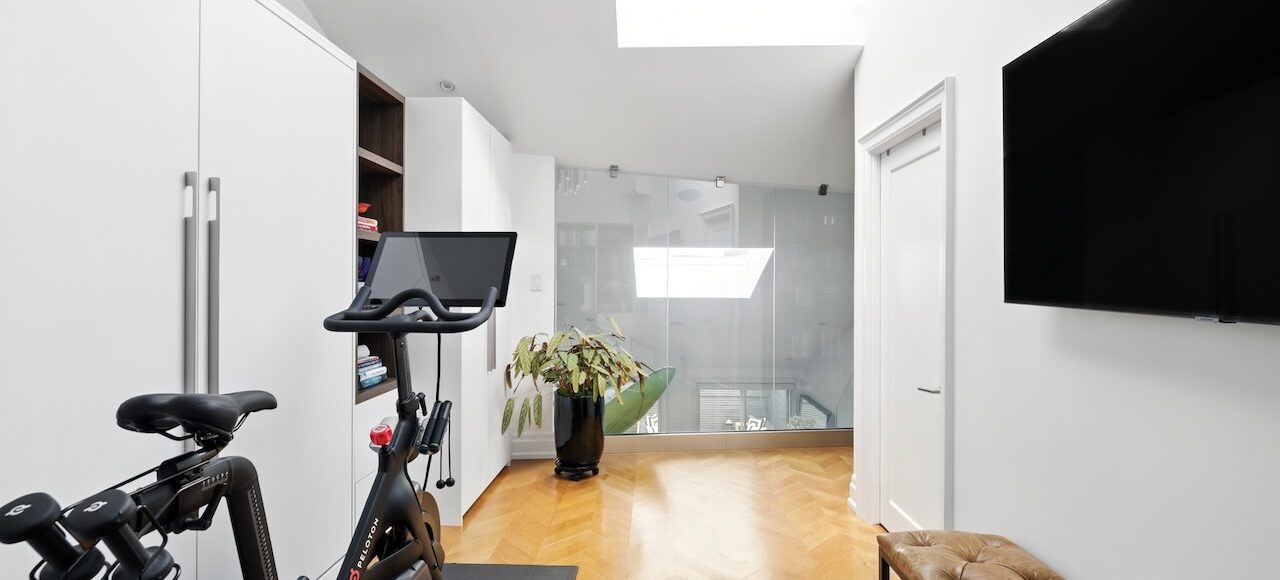 Upstairs, the flexible third-floor retreat works beautifully as a home office, gym, or guest suite thanks to a Murphy bed and privacy glass. Smart-home technology, in-ceiling speakers, and custom details throughout make it both sophisticated and entirely livable.