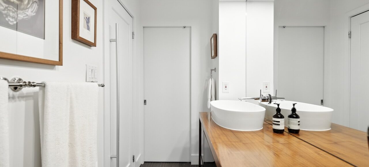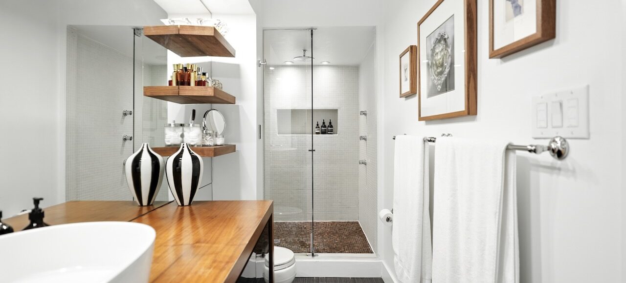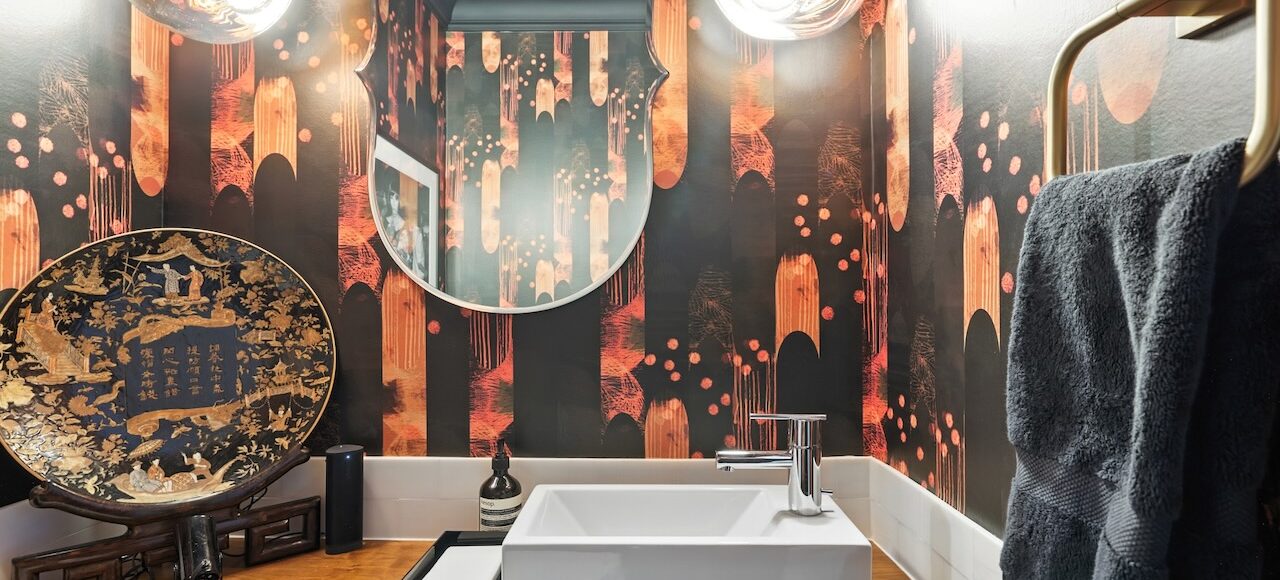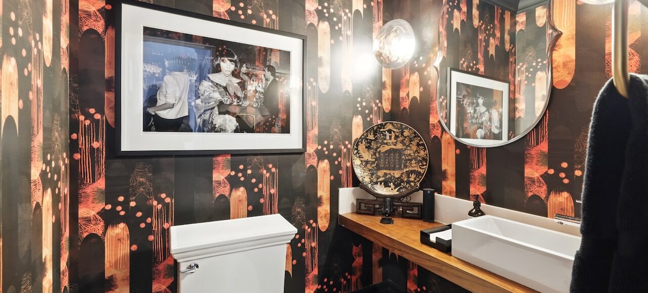 - Sophisticated powder room with Dolomite tile accents