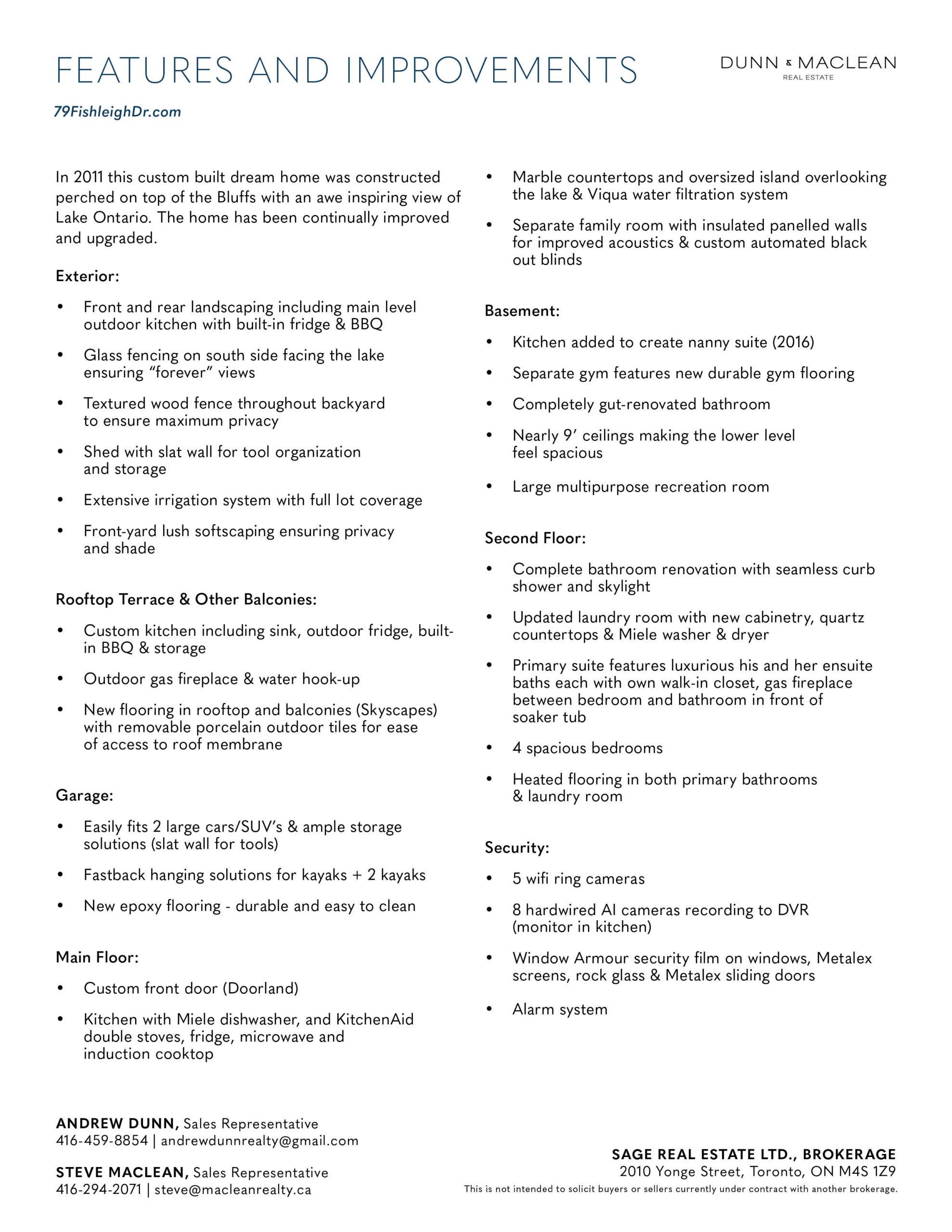 Perched on the Scarborough Bluffs with sweeping, year-round lake views, this sophisticated family home was built in 2011 and offers over 5,000 sq. ft. across four levels. From multiple vantage points you are treated to lakeside vistas, most notably from the show-stopping 875 sq. ft. rooftop terrace with a full outdoor custom kitchen (built-in fridge & BBQ) with water hook-up and gas fireplace.