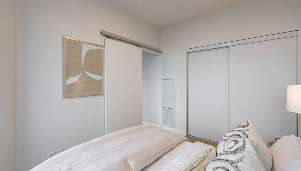 Step into this fully renovated 1 bedroom + den suite and experience breathtaking, unobstructed southeast views of Toronto’s downtown skyline and Lake Ontario. Perfectly positioned in the prestigious Burano Condos at Bay & College, this residence combines contemporary design with effortless city living. The open-concept layout offers exceptional flow and functionality, featuring a brand-new gourmet kitchen with quartz countertops, matching quartz backsplash, and premium stainless steel appliances—never used. Elegant new laminate flooring, floor-to-ceiling windows, and 9-foot smooth ceilings create a bright, airy atmosphere throughout. The spacious den provides flexible options for a home office or dining area, while the large full-length balcony is the ideal spot to take in panoramic city and lake views.