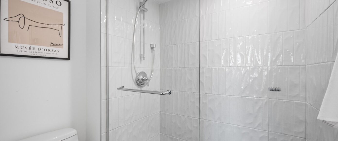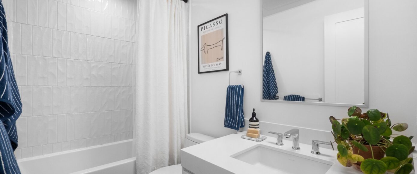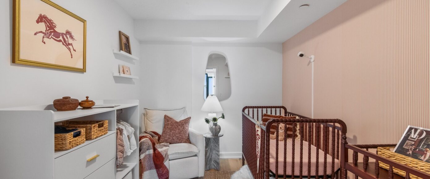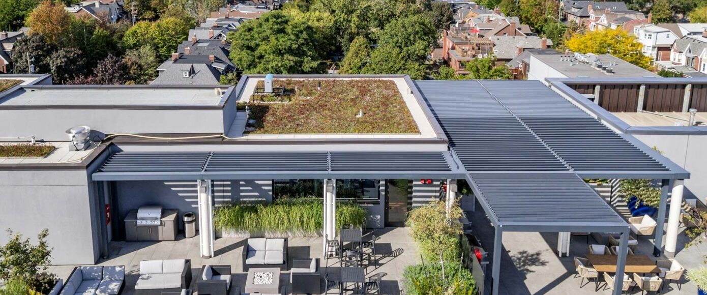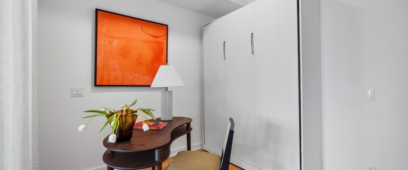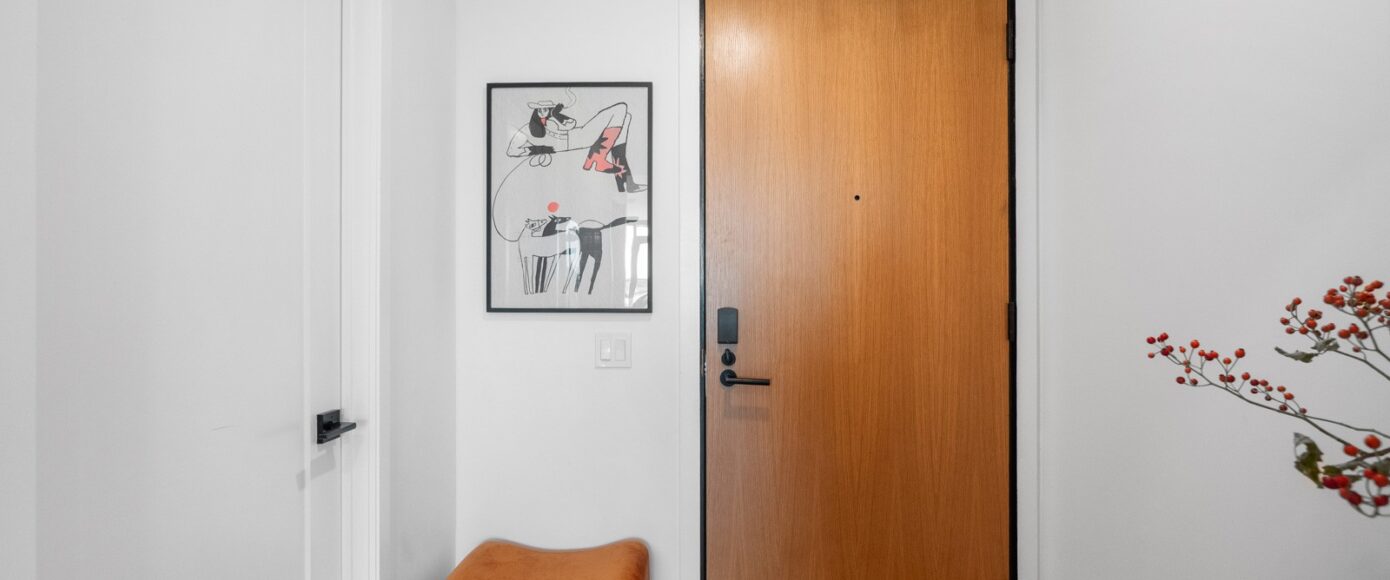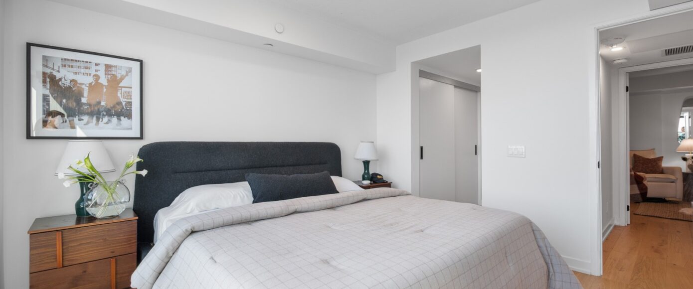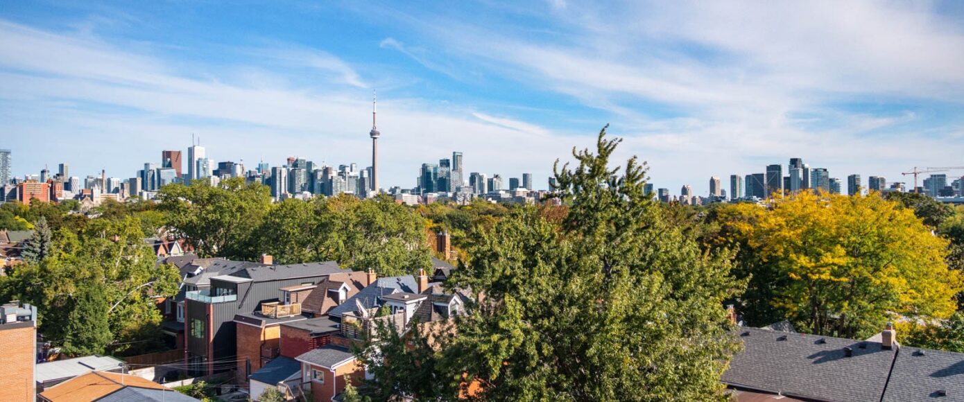 Inside, natural light pours through south-facing floor-to-ceiling windows, framing skyline and lake views that stretch from Trinity Bellwoods to the CN Tower. The main floor flows seamlessly from a chef ’s kitchen with custom black cabinetry and waterfall island, to an airy living space that opens to two private terraces — ideal for morning coffee or sunset cocktails.